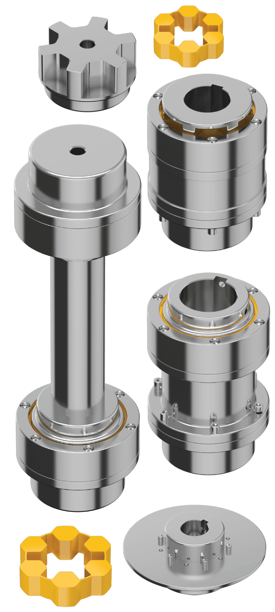 Maakt asdiameters tot 15 inch en een koppel van 170kNm mogelijk in verschillende configuraties, waaronder: zonder spacer, spacer, zwevende as, vliegwiel, beperkte float, en meer. - Geen smering nodig.