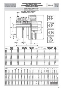MWM Elektromagnetische tandkoppeling ESBG/Z met flexibele koppeling: Een getande koppeling is een apparaat dat twee kinematische systemen met elkaar verbindt die op dezelfde of een iets afwijkende snelheid t.o.v. elkaar draaien, afhankelijk van het type vertanding. Het kan de volgende soorten vertandingen hebben:Driehoekig zonder speling, voor aansluiting bij stilstand of bij nul / bijna nul relatieve snelheid, twee draairichtingen.Trapeziumvormig met speling, voor aansluiting bij stilstand of bij zeer lage relatieve snelheid, met twee draairichtingen.Zaagtand, voor verbinding tijdens beweging met lage relatieve snelheid, 1 draairichting. Standaard getande koppelingen maken verbinding in elke positie mogelijk, terwijl optionele getande koppelingen kunnen worden geleverd die gefixeerd worden om in 1 stand of om een aantal graden weer inschakeld te worden.Ze kunnen op de volgende manieren worden bediend: – hydraulisch – pneumatisch – electromagnetisch Ze kunnen op de volgende manieren werken: POSITIEF: de besturing verbindt de transmissie. NEGATIEF: (met drukveren) normaal gesloten: de besturing koppelt de transmissie los.