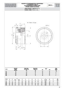 MWM Enkel-schijfs – veerbekrachtigde elektromagnetische koppeling EMC-N: Een frictie-koppeling (of wrijvingskoppeling) is een apparaat dat beweging overbrengt tussen twee kinematische systemen die met verschillende hoeksnelheden draaien. MWM produceert de volgende soorten koppelingen: – Meerdere schijven (multidisc), voornamelijk voor oliebad en droge toepassingen op lage snelheid. – Eén schijf, alleen voor droge toepassingen. Deze koppelingen kunnen op de volgende manieren worden geschakeld: – hydraulisch – pneumatisch – electromagnetisch Ze kunnen op de volgende manieren werken: POSITIEF:de besturing verbindt de transmissie; de koppeling wordt ingeschakeld wanneer er olie, lucht of spanning wordt toegevoerd. NEGATIEF (veer-aangebracht):de besturing verbreekt de overdracht; de koppeling wordt ontkoppeld wanneer er olie, lucht of spanning wordt toegevoerd.